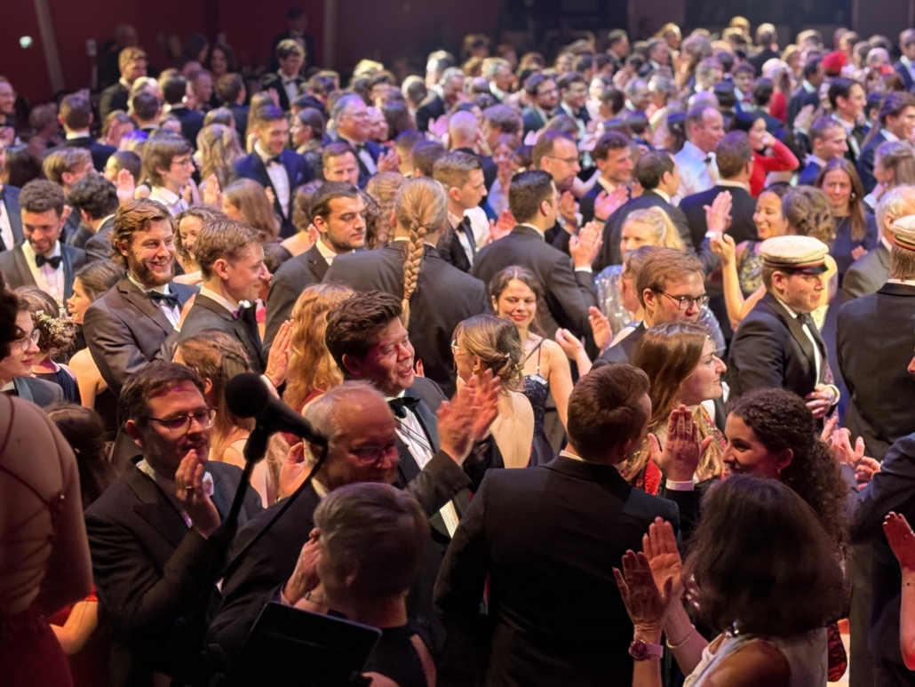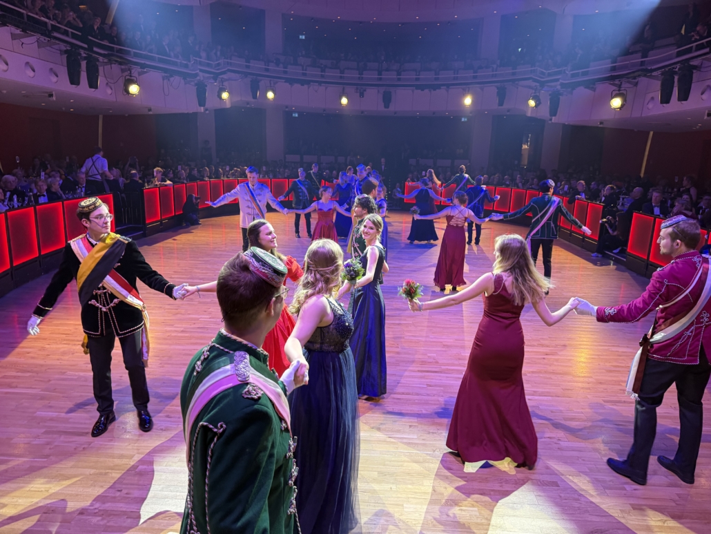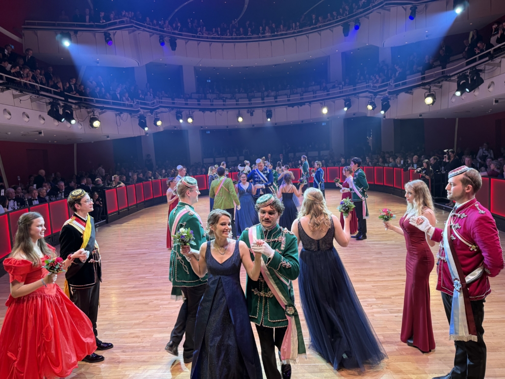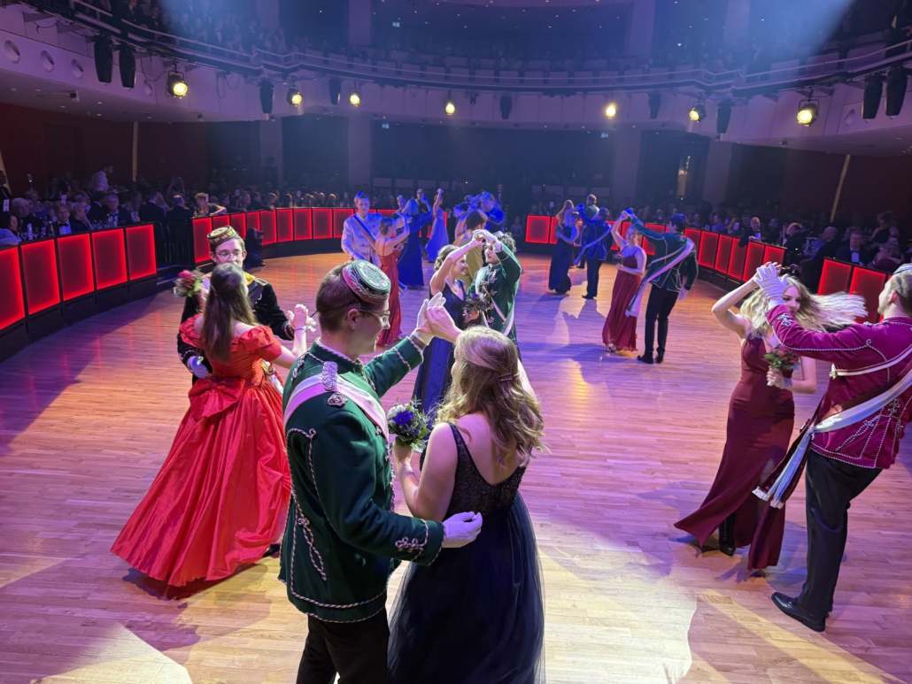 /in Allgemein /von KKMAm 21.Februar 2025 fand im Deutschen Theater München zum wiederholten Mal der größte Akademiker-Ball in Deutschland statt. Er wird von dem Verein Katholische Korporationen Münchens (KKM), einem Zusammenschluss der Münchner CV- und KV- Verbindungen in Zusammenarbeit mit den MCV- und MKV-Chargen organisiert. Die Besucherzahl des Vorjahres konnte wieder erreicht werden, alle Sitzplätze waren ausverkauft! Traditionell eröffneten die Aktivenvertreter mit der Eröffnungspolonaise. Die Showeinlage „Dance Venture“ begeisterte mit ihren akrobatischen Einlagen das Publikum. Höhepunkt war sicher wieder die Münchner Francaise mit Christian Sucrow (Sx) und der anschließenden kommandierten Polka. Vor allem eine Mischung aus jung und alt ist eine große Bereicherung. Neben ca. 500 Studentinnen und Studenten sind auch Gäste mit 90 Jahren dabei, die einen herrlichen Abend verbracht haben. Bei hervorragender Tanzmusik vom Michi Högl Dance Orchestra und der Showband Party Time im Ballsaal sowie vom DJ Flyin B im Foyer feierten die buntbemützten Scharen in ausgelassener Stimmung bis in die frühen Morgenstunden. Das Photobooth erfreute sich in diesem Jahr wieder großer Beliebtheit – wie ein paar Bilder beweisen. Die exzellenten Weine von Cartellbruder Anselmann (Cg), aber auch die Schneider-Weisse im Weisswurtshimmel im Silbersaal erfreuten sich – auch dank studentenverträglicher Preise – großen Zuspruchs. Der Spaß am Tanzen und die Freude am Leben waren sieben Stunden bei jeder Begegnung zu spüren und bildeten die Basis für eine einzigartige Ballathmosphäre.